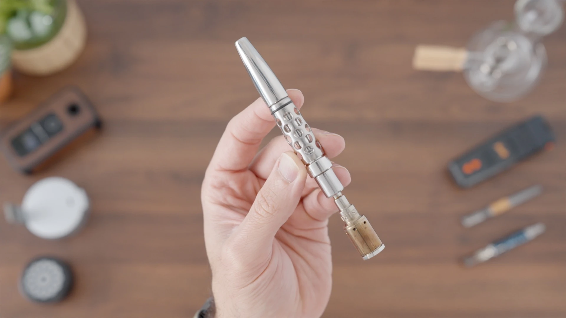 The Simrell Collection stem, priced at a hefty $300, is a premium, stem vaporizer primarily constructed from precision-machined Titanium. Externally- it’s the best looking manual vaporizer I’ve seen. Internally, the cap protects a solid titanium “heating engine” which acts as a thermal mass, and two “click” discs. The design features a narrow and deep bowl, contrasting with the wider, shallower Tempest 2. In terms of performance, I found the vapor quality to be outstanding and better than the Vestratto Tornado, while being on par with the Tempest 2. The main drawbacks I noted are related to usability- the Simrell is non-magnetic, forcing me to wait until it is cold to safely uncap it and empty the bowl. Also, the deep and narrow chamber frequently causes the spent herb to get stuck, requiring a sharp tool to “debowl” it. But overall, the Simrall produces best-in-class vapor quality and I really enjoy using it.Read full review