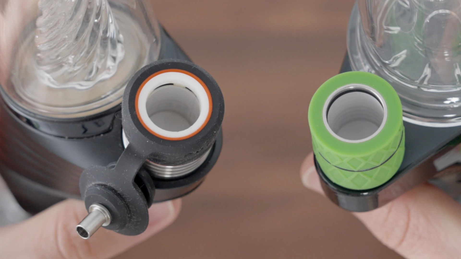 The main difference is how the bubbler and the chamber interface with each other, which is now external via this green silicone sleeve, and not internal- from under the bubbler.