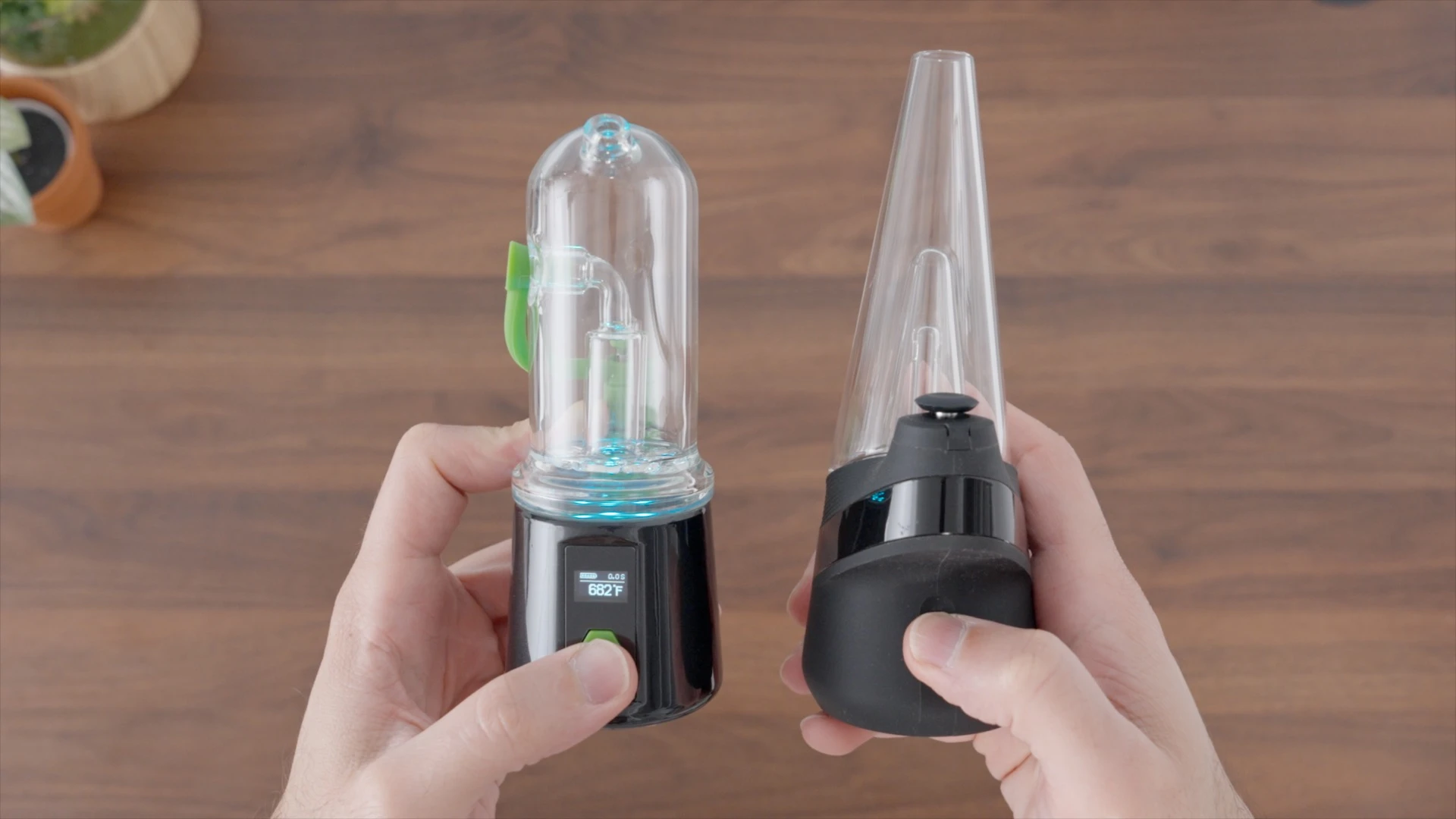 • The Bomb has a simple on-board interface with precise temp control, while the Peak has one button and four preset temperature levels.