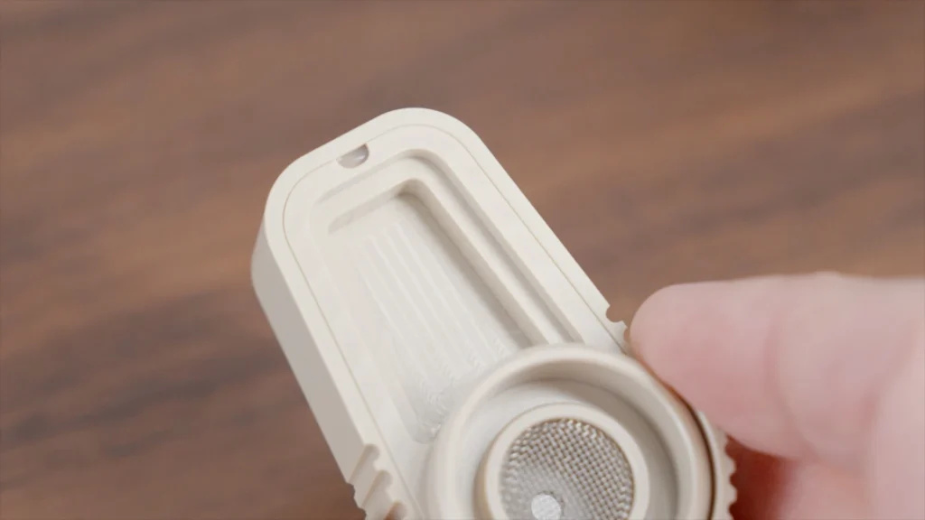 It has a unique design, with an exterior that’s made mostly from PEEK. It has one operation button, a screen with buttons at the bottom, and the mouthpiece on top. It’s a pretty hefty and bulky unit, and personally- I’m not a fan of the aesthetics. It’s slightly aggressive and not pleasant to touch.