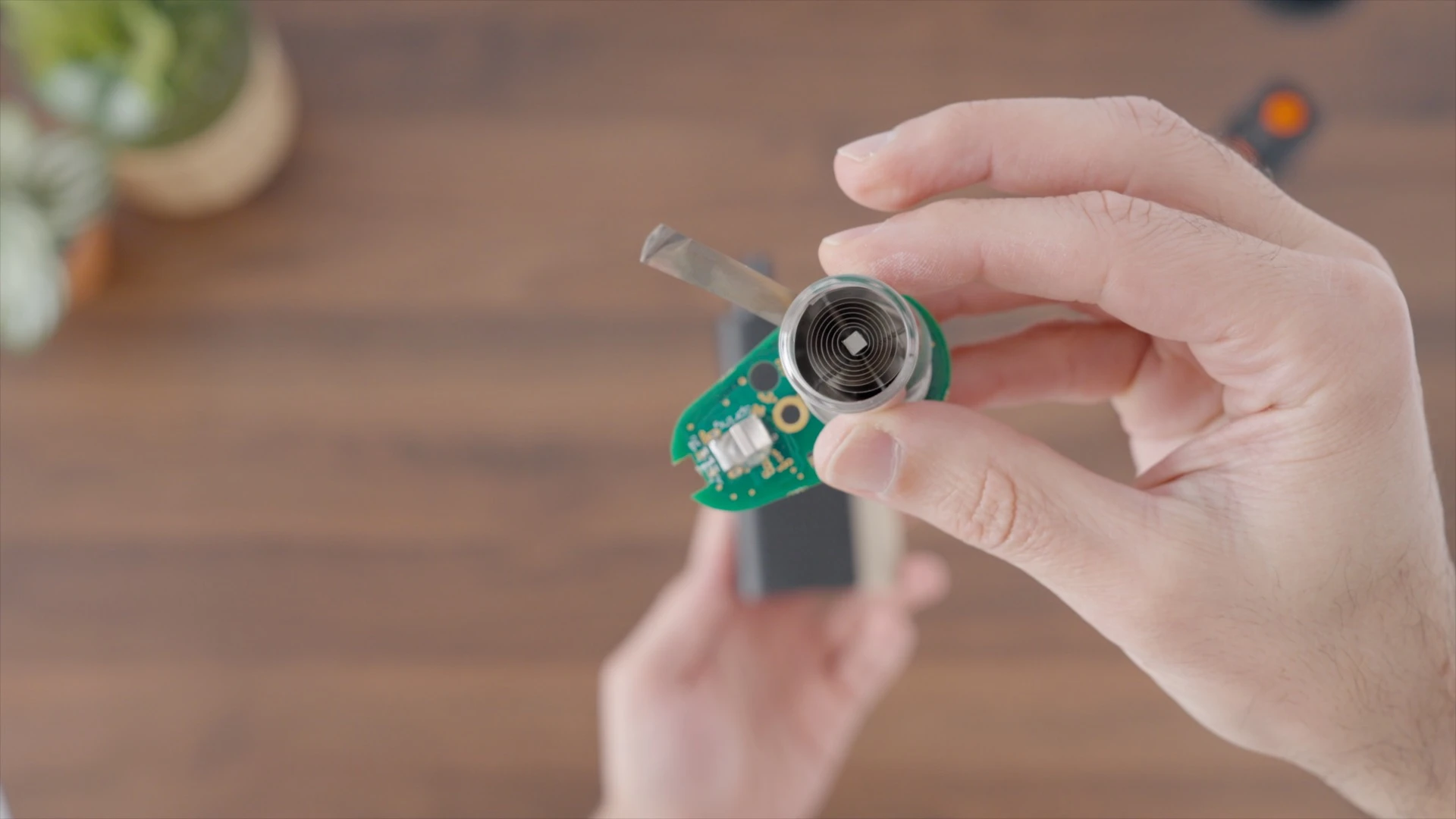 The top “cooling unit” pulls out and under it there is the chamber, the battery compartment, and a pick tool that’s tucked in here.
