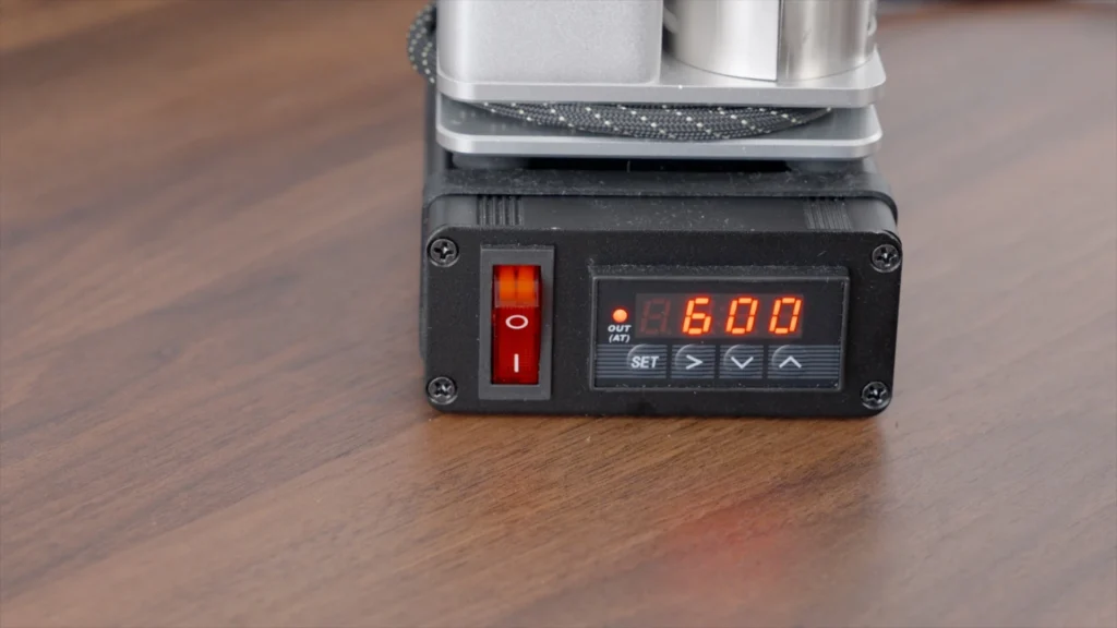 Next is the PID controller- the main control unit of this heater. It plugs into a standard wall outlet and is responsible for powering the heating element and precisely regulating its temperature. “PID” stands for Proportional-Integral-Derivative, which refers to the algorithm, or the feedback loop, it uses to maintain a stable and accurate temperature.
