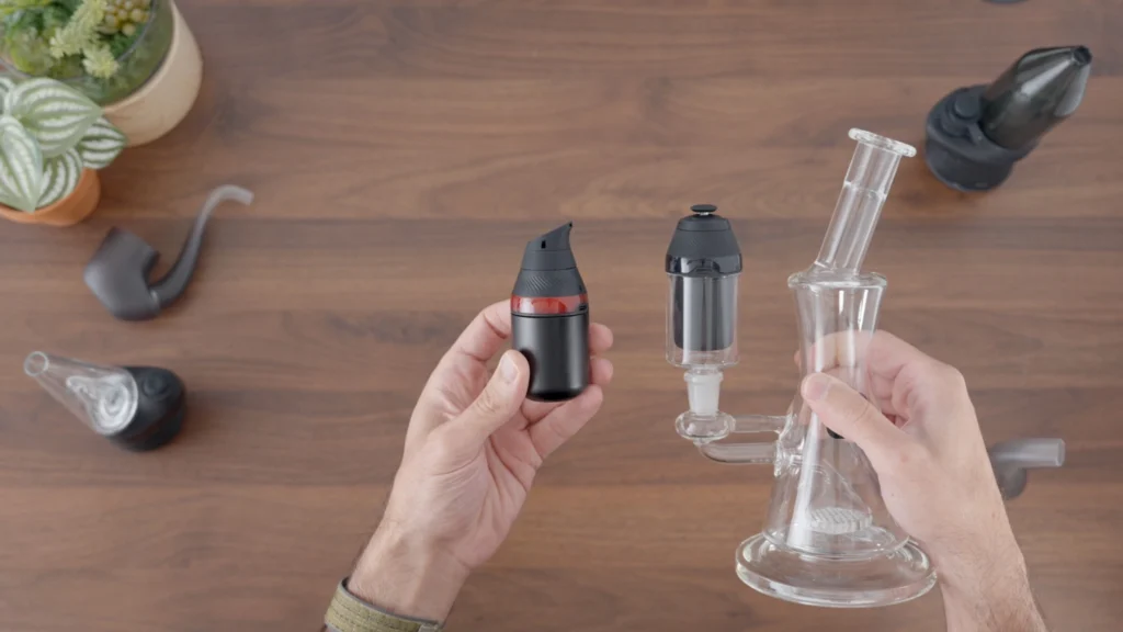 Now, the stock glass is just the start. You can swap it out for Puffco’s own pieces like the Wizard, the Terra, or the Bub — which adds water filtration. And there are excellent third-party options too, like the MJ bubbler or rig adapters that let me connect the Proxy to basically any glass rig I own.