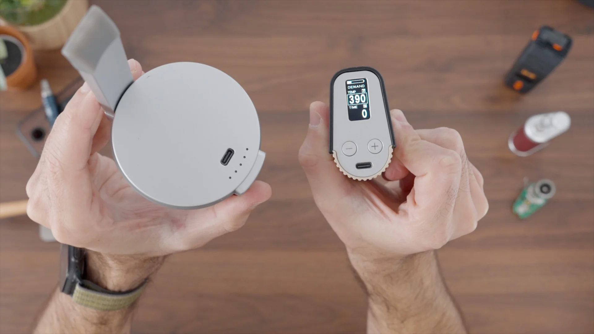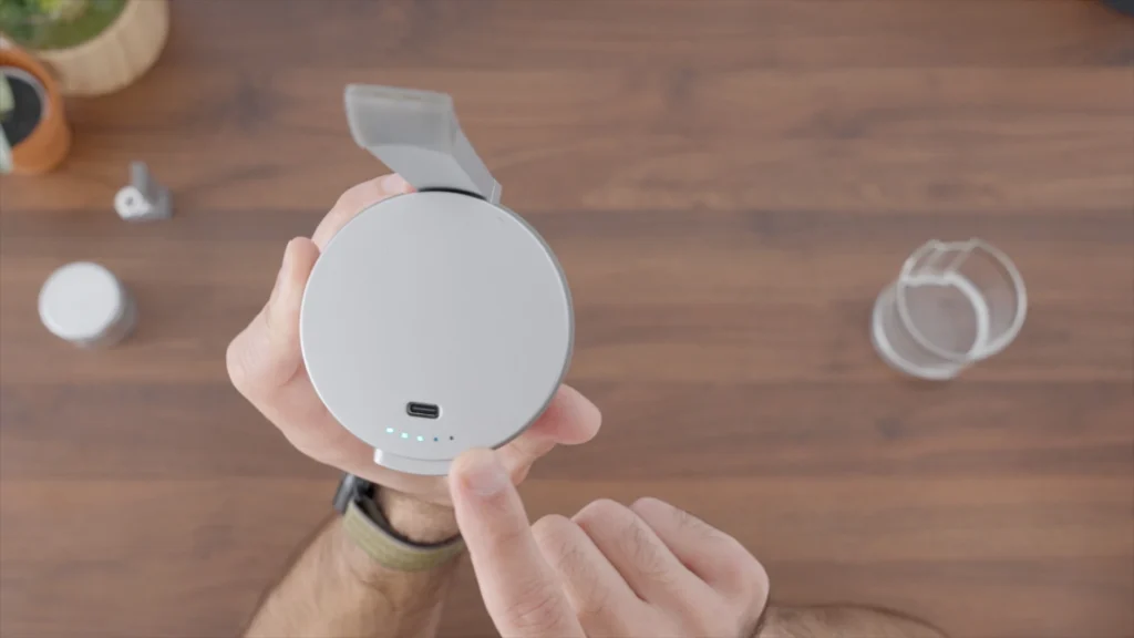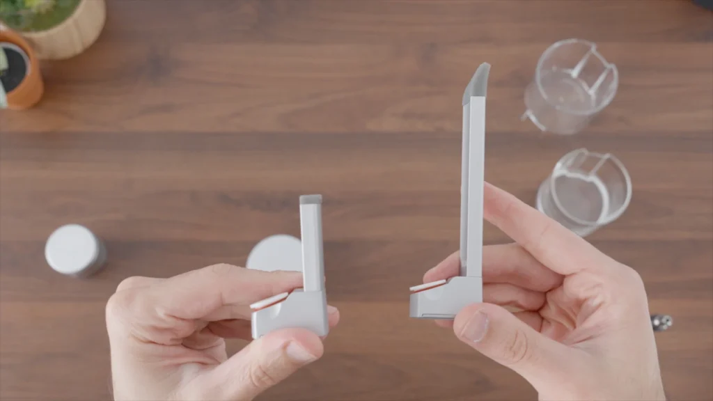 The round base is where the heating element is, plus the battery and electronics. It feels super solid; the shell is made from Aluminum and it’s beautifully machined.