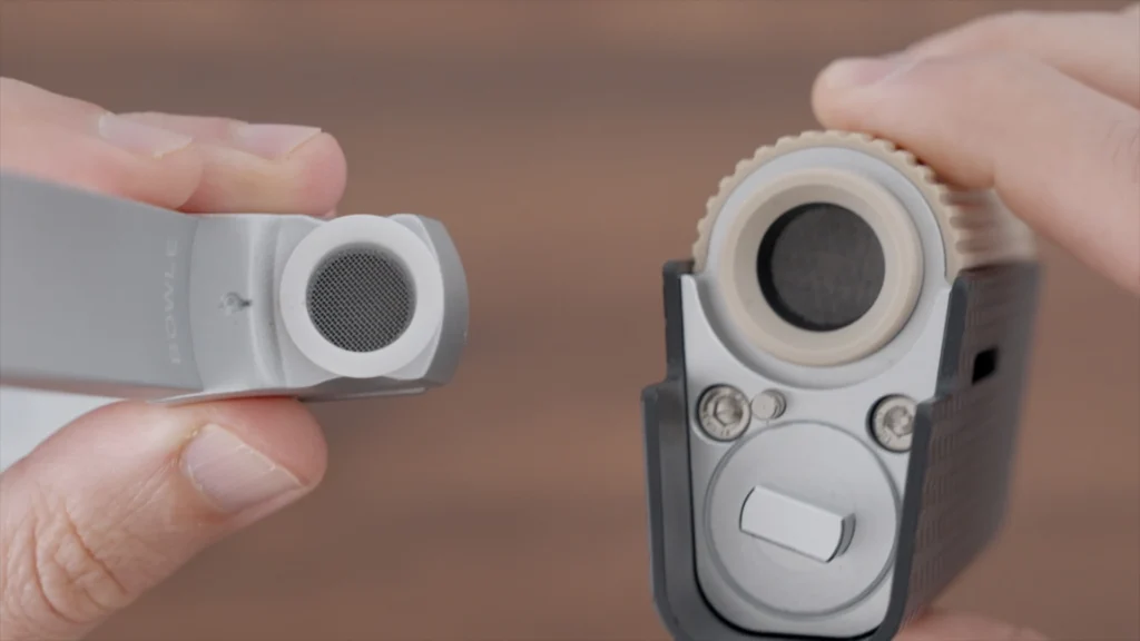 The Aluminum stem basically the airpath and also houses the chamber—this is where the herb goes. These ceramic chambers are removable so they can be used as capsules. Tafee includes a mill in the kit that stores 4 of these and auto-fills them, which is pretty cool. The kit includes 2 stems: a long one to be used with the cup, or a shorter one that sits close to the base. The silicone tips of these are also interchangeable, so the whole thing is pretty customized.
